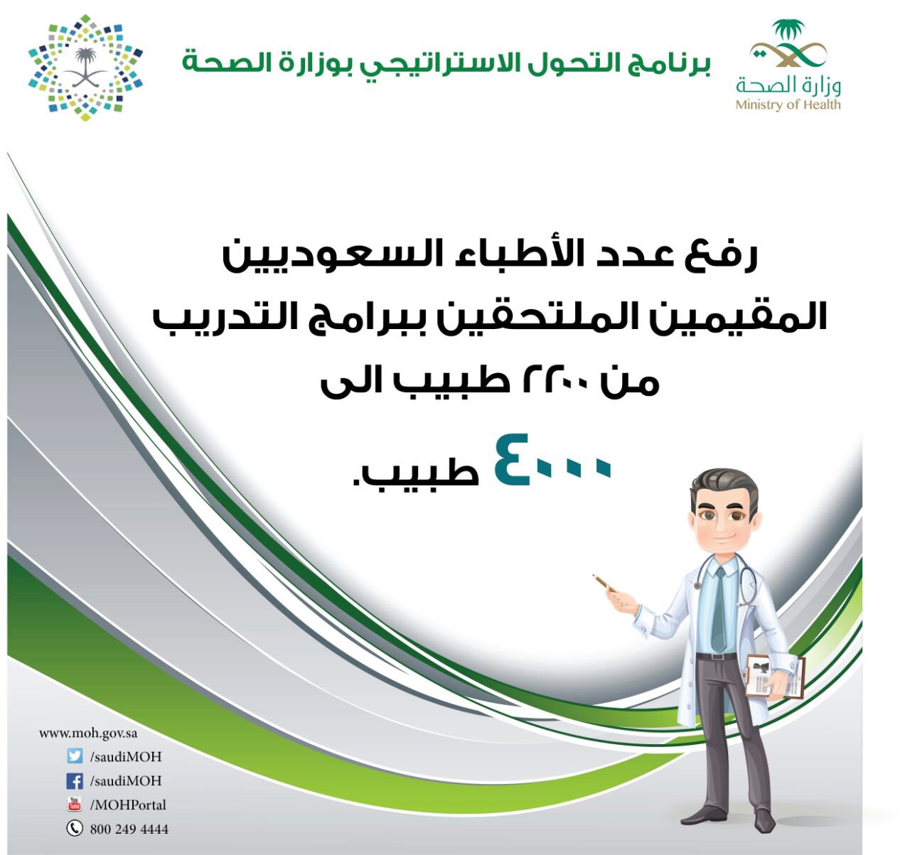 و ز ا ر ة ا لـ صـ حـ ة السعودية On Twitter مضاعفة عدد الاطباء السعوديين المقيمين الملتحقين بالتدريب المتخصص ليصل لـ ٤٠٠٠ طبيب برنامج التحول الوطني 2020 الصحة