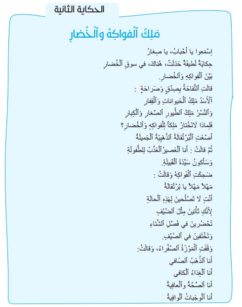 حكاية ملك الفواكه و الخضار المستوى الثاني مرجع مرشدي في اللغة العربية موقع الأساتذة والتلاميذ للتعليم عن بعد