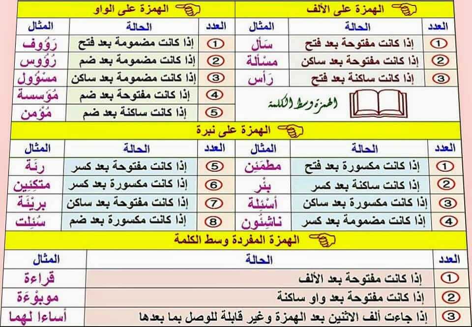 مواضع الهمزة فى ورقة كل مواضع وقواعد رسم الهمزة فى ورقة واحدة فقط هامة لكل طالب