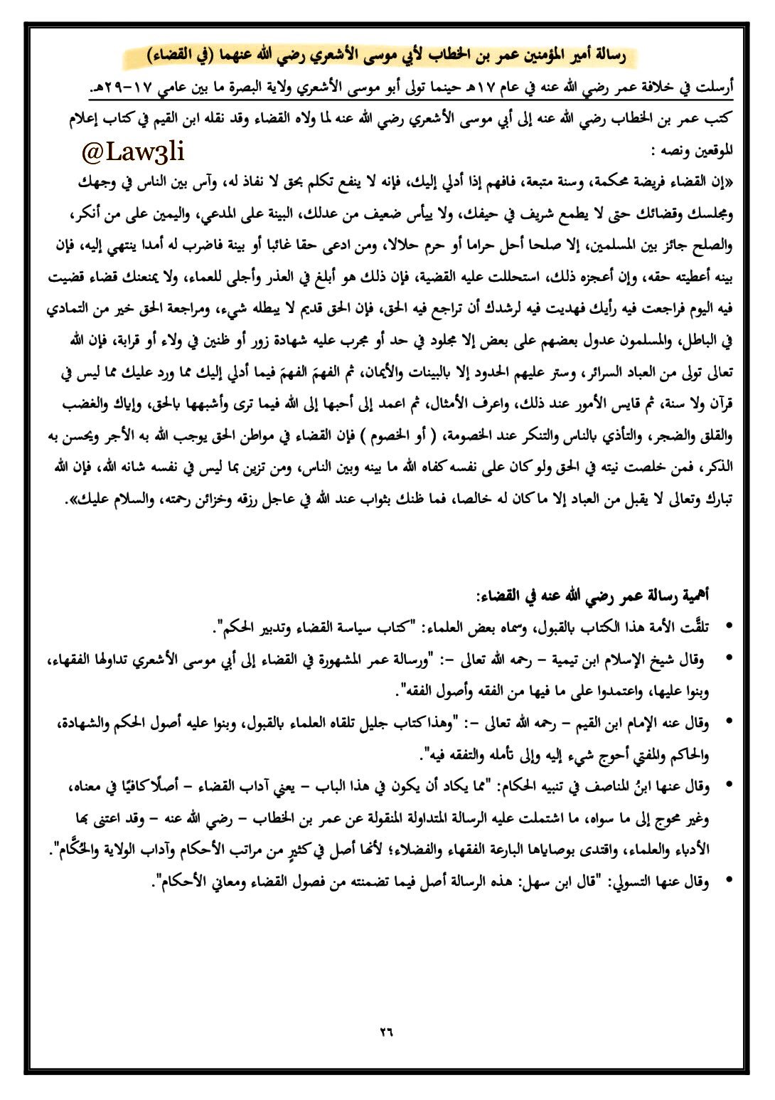 شبكة عمان القانونية On Twitter رسالة سيدنا عمر بن الخطاب لأبي موسى الأشعري
