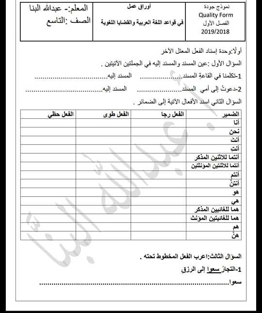 دليل المعلم لمادة اللغة الإنجليزية إجابات كتاب الرياضيات للصف التاسع الفصل الأول. حل أسئلة كتاب قواعد اللغة العربية للصف التاسع الفصل الثاني حم ل أيض ا. اوراق عمل للتاسع doc عرض تنزيل 81 كيلوبايت. كتاب اللغة العربية الصف السابع الجزء الأول 2019 2020.