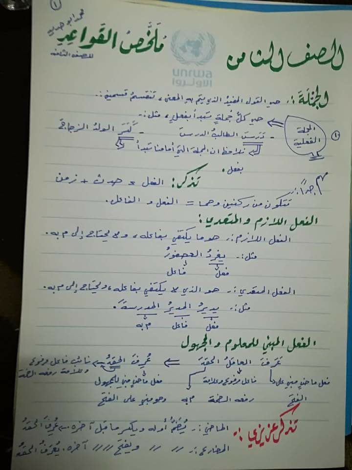 ملخص قواعد اللغة العربية للصف الثامن الفصل الأول منتديات صقر الجنوب