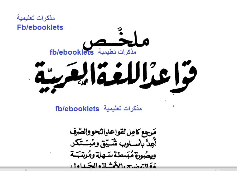 كتاب ملخص قواعد اللغة العربية Pdf Electronic Books Books Online Library
